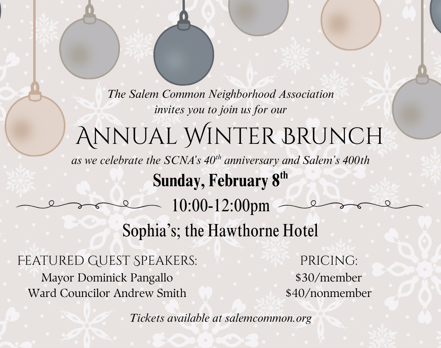 *Become an SCNA member at https://salemcommon.org/product-category/membership/ or day of to get the $30 price.